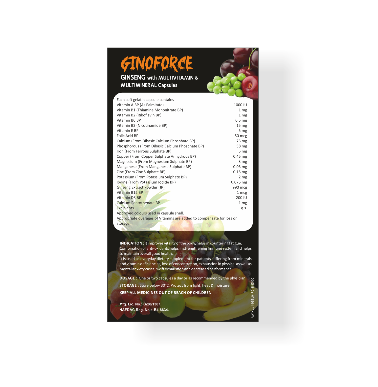 Ginoforce capsules contain an amazing blend of vital 20 nutrients including vitamins, minerals & ginseng which safeguards nutritional intake during a hectic modern lifestyle.